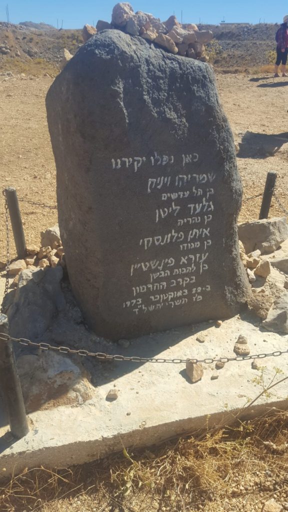 The Sayeret commander Shmaryahu Vink, was hit next to the monument. Gili (Gilad) Litan, standing behind him attempted to carry him away but was hit by a burst of a gunfire. Eitan Polanski, the medic, who hurried to their aid, was also shot. Ezra Finnstein, another Sayeret soldier was shot dead by a sniper fire. One of the combatants, speaking about the Sayeret commander said: “On a stretcher, with his throat dry, he whispered his last words: ‘we must not retreat from the Hermon.'”