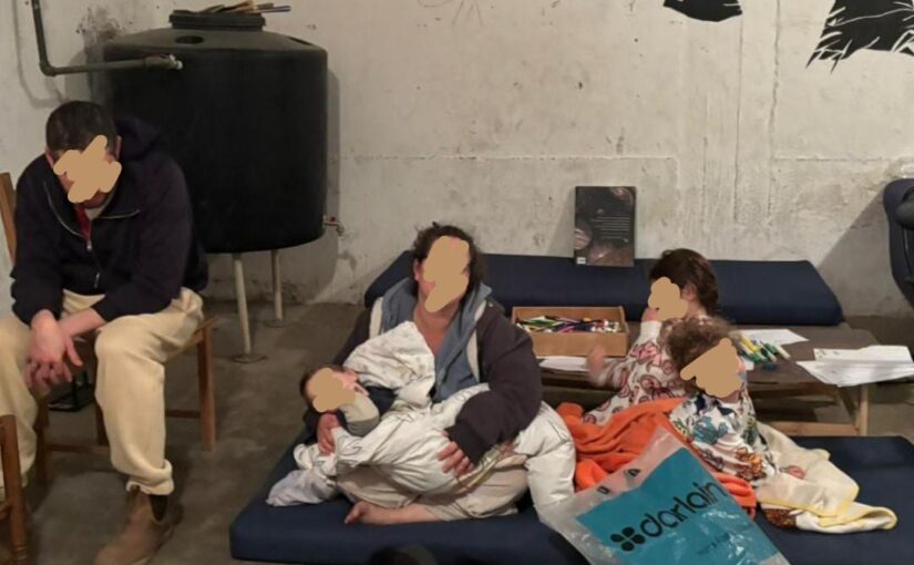 Exhausted shelter warriors in a public shelter after a hard night of siren alerts.