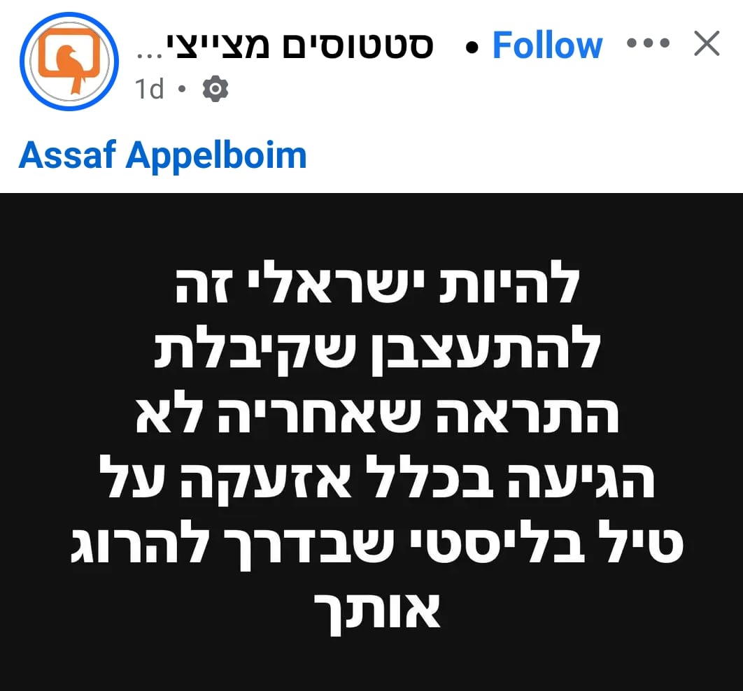 Assaf Appelboim – To be an Israeli is to get mad that you got a pre-alert massage, but there was no siren alert after of ballistic missile that on his way to kill you.