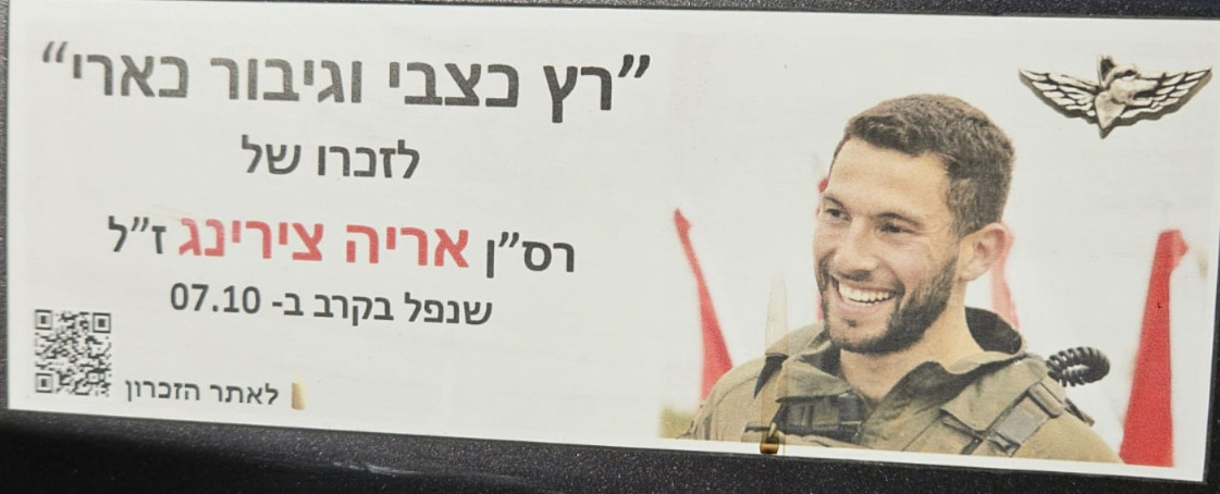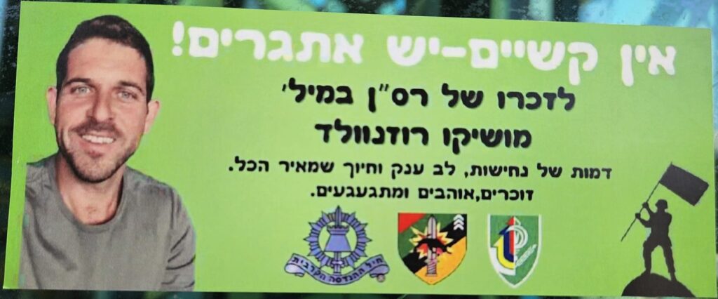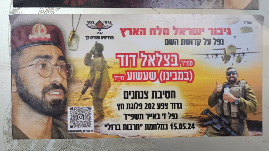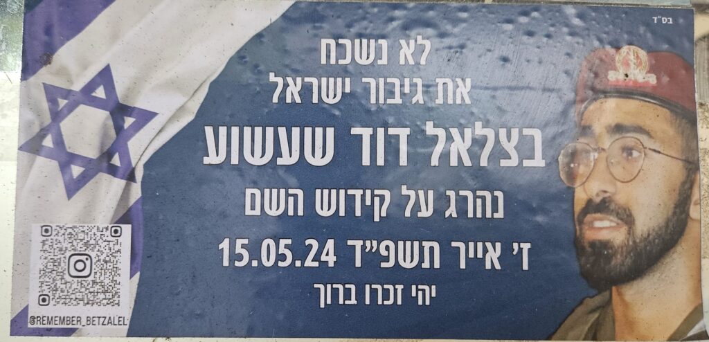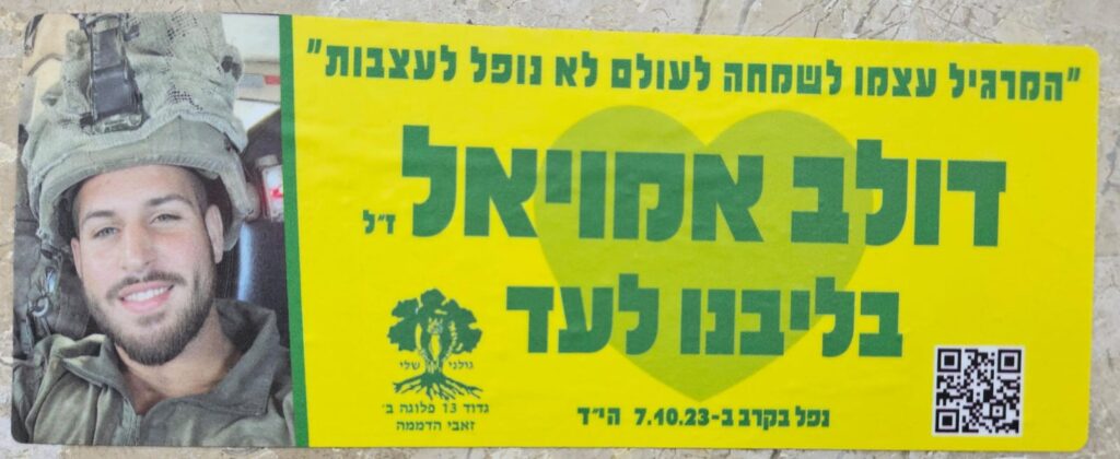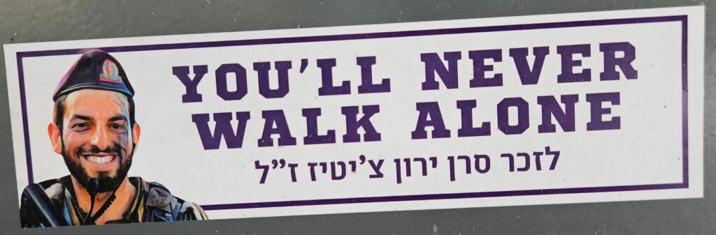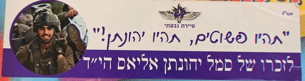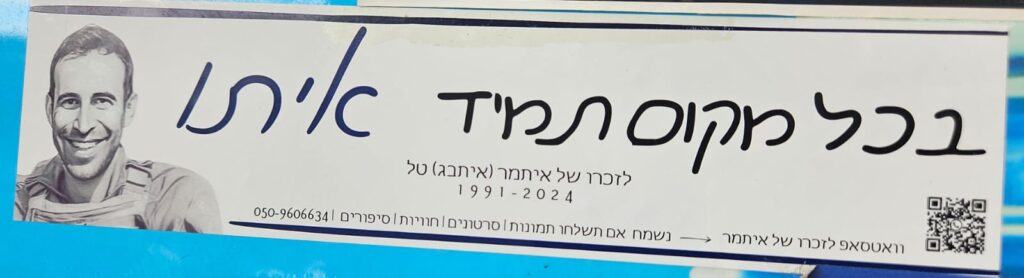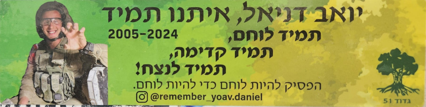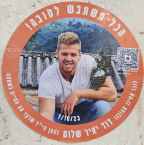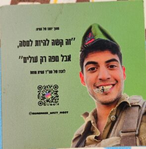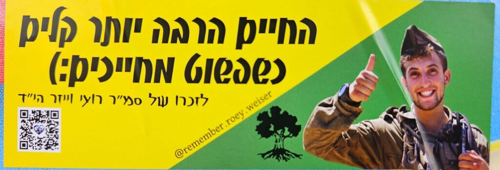 Since Hamas attack on October 7th on Israel the country has been filled up with memorial stickers. This page hosts some of those and you welcome to send more. Th stickers are listed by the first name of the fallen on the sticker (here is a link to a post I wrote about it)