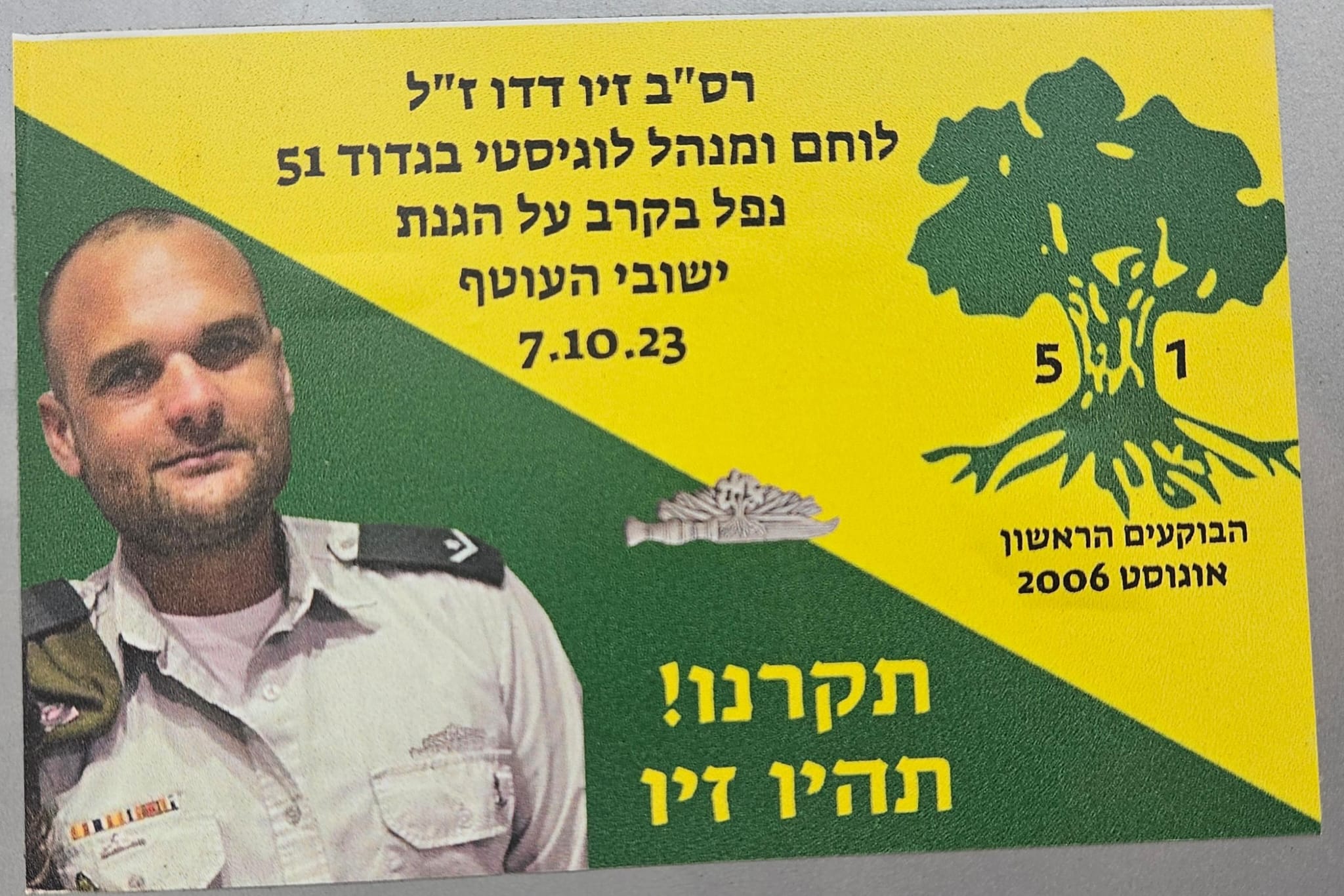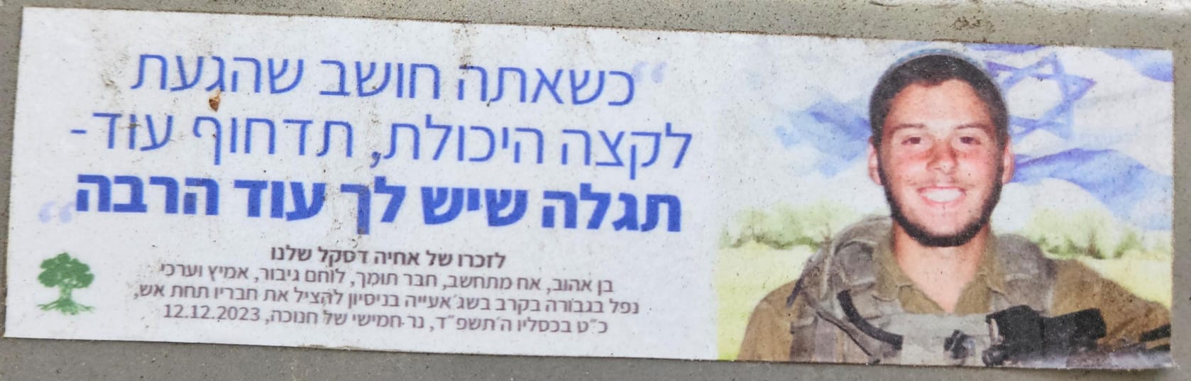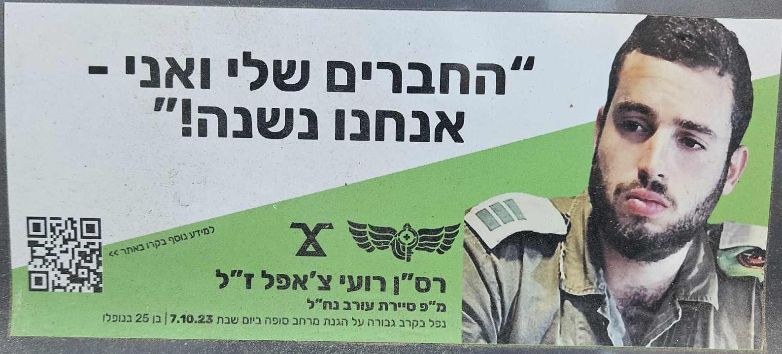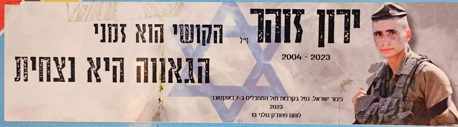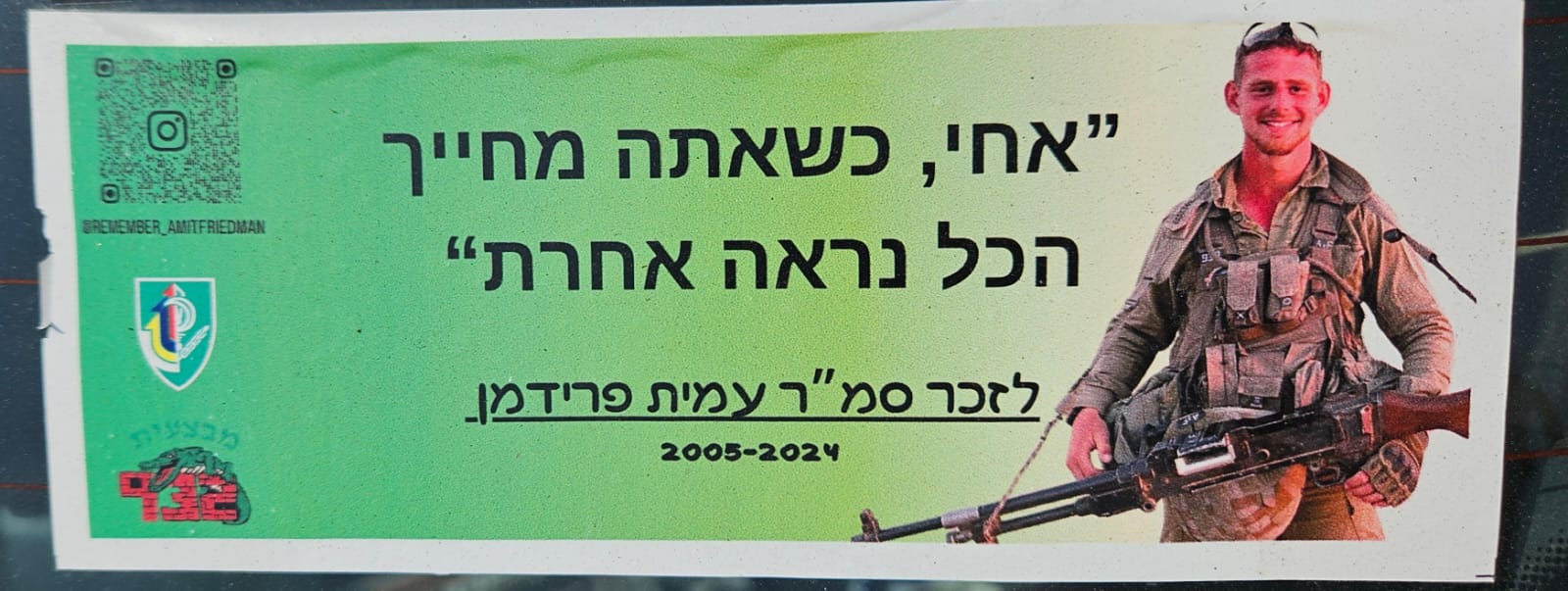 Since Hamas attack on October 7th on Israel the country has been filled up with memorial stickers. This page hosts some of those and you welcome to send more. Th stickers are listed by the first name of the fallen on the sticker (here is a link to a post I wrote about it)